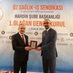 Bugün burada Mardin Şubemizin 1. Olağan Genel Kurulu için bir aradayız. Şube Başkanımız Şehmuz Tedik ve ekibini başarılı faaliyetlerinden dolayı tebrik ediyor, genel kurulumuzun emek camiamıza Hak-İş’imize ve Sendikamıza hayırlar getirmesini temenni ediyorum.