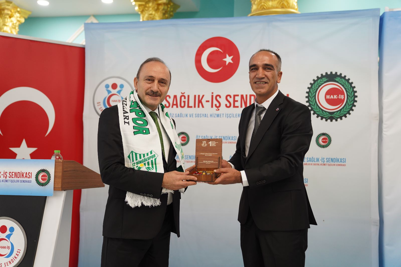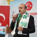 Bingöl Başkanımız Ercan kardeşimize bugüne kadar vermiş olduğu mücadeleden dolayı teşekkür ederim. Ekibi ile birlikte buradaki 800 çalışanın hemen hemen hepsini üye kaydetmiş. Allah kendisinden ve ekibinden razı olsun. Yeni dönemleri hayırlı olsun. Genel Kurulumuzun da hayırlara vesile olmasını diliyorum.”