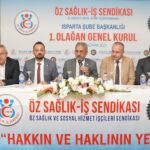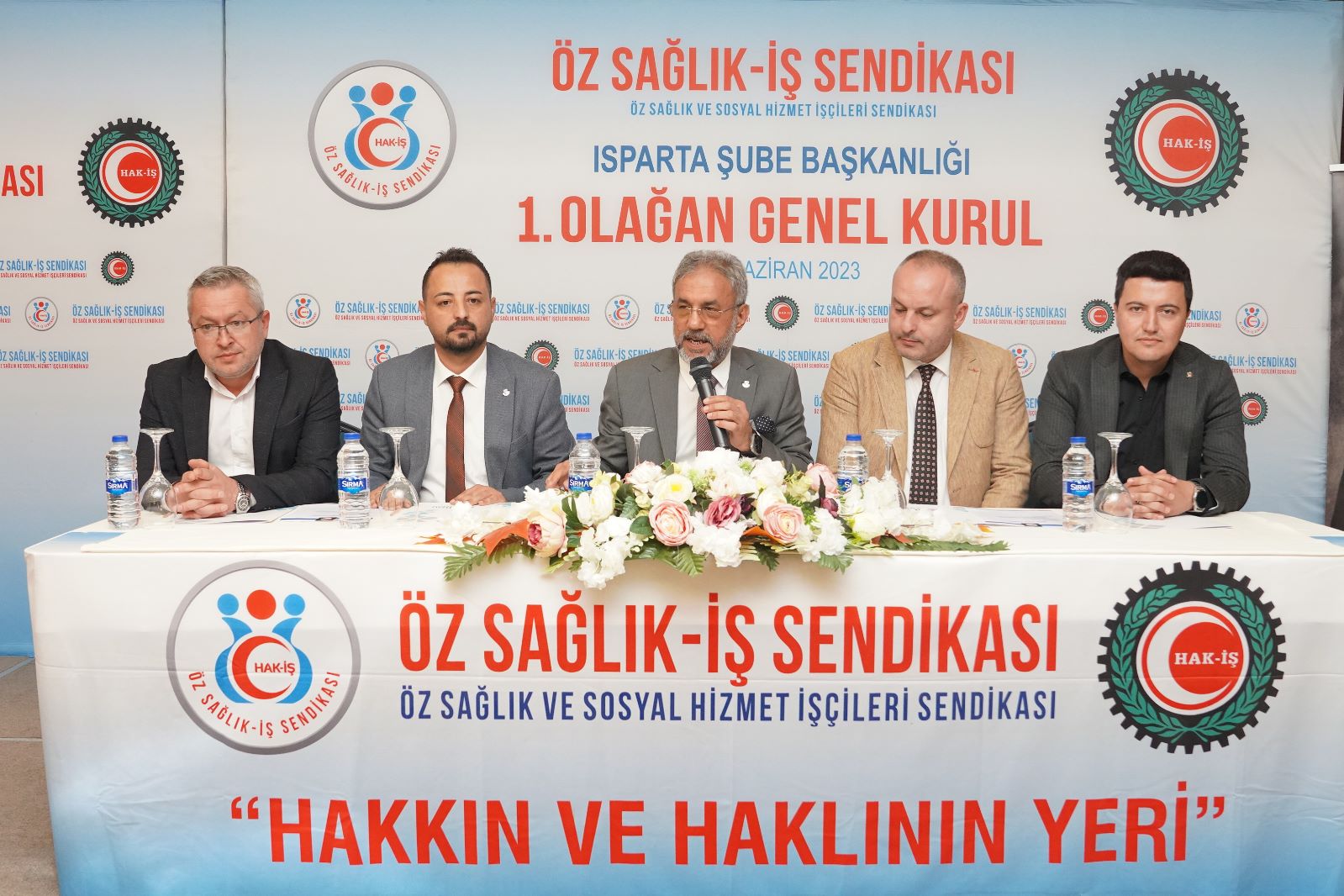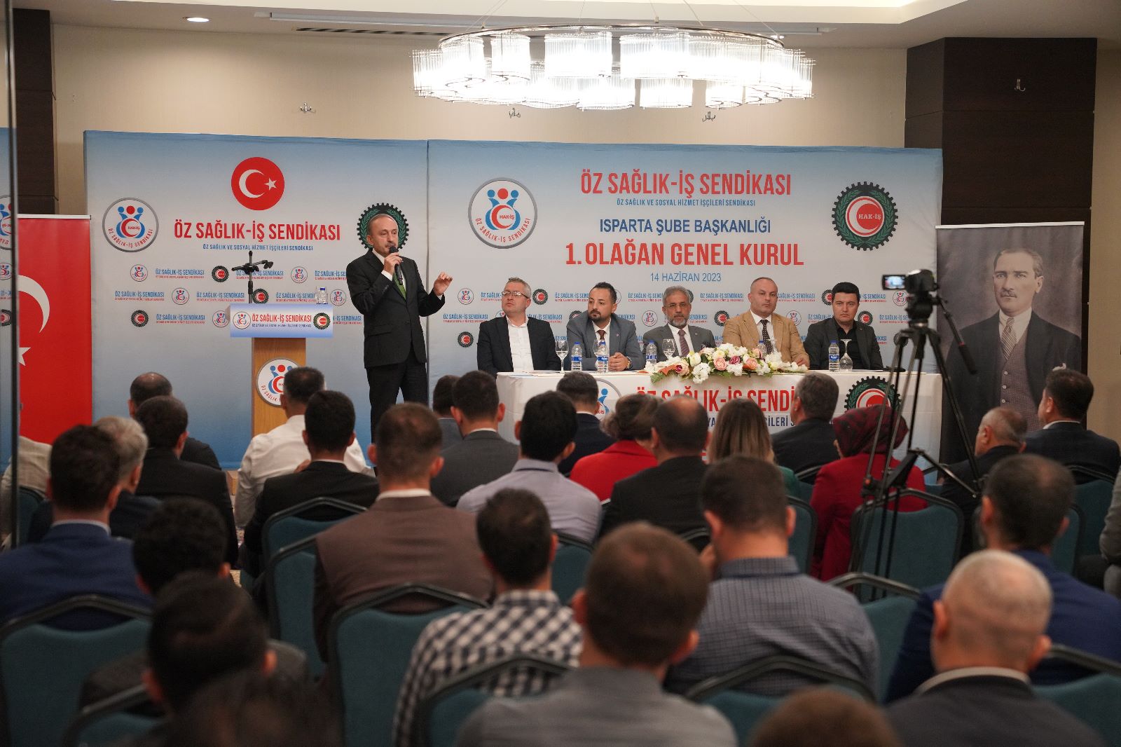 “ Öz Sağlık-İş Sendikamız Isparta Şubesi’nin  1. Olağan Genel Kurulu nedeniyle aranızda bulunmaktan büyük mutluluk duyuyorum. Sağlık ve sosyal hizmet emekçisi kardeşlerimi fedakarca çalışmalarından dolayı  en içten dileklerimle kutluyor, Genel Kurulun hayırlara vesile olmasını diliyorum”