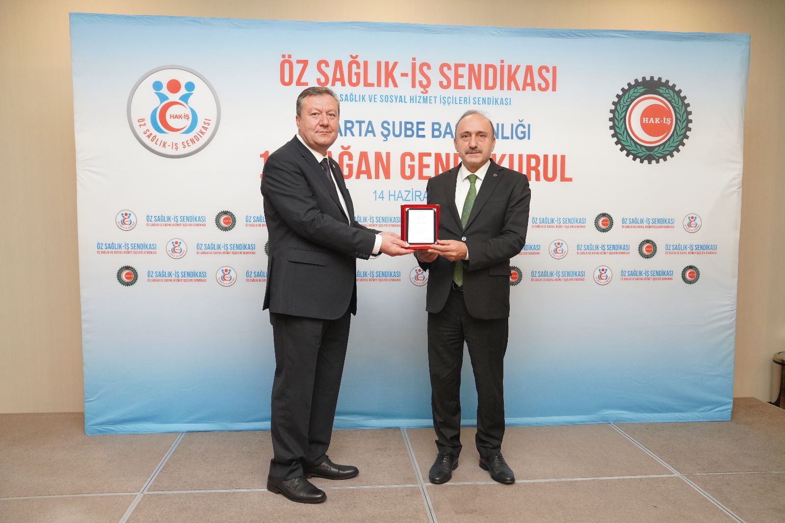 “ Sizlere Hizmet-iş Sendikamızın selamlarını iletiyorum. Son bir  iki haftadır  Isparta’da  sendikal çalışmalar yürütüyoruz, örgütlenme faaliyetlerinde bulunuyoruz. HAK-İŞ’e bağlı tüm sendikaların bayrağını Isparta’da dalgalandırmak istiyoruz. Bu manada da  Öz Sağlık-İş Isparta Şubemize katkılarından dolayı şükranlarımı sunuyor, Genel kurulun hayırlara vesile olmasını temenni ediyorum”.