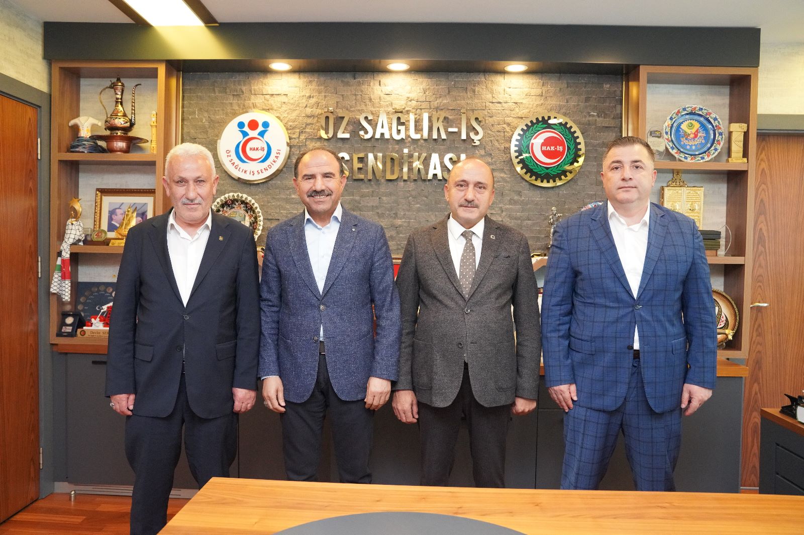 HAK-İŞ Genel Başkan Yardımcılığı’na seçilen Genel Başkan Sert’e bir diğer hayırlı olsun ziyareti Konfederasyonumuza bağlı Öz Toprak-İş Sendikası’nın Genel Başkanı Metin Özben, Genel Başkan Yardımcıları Mehmet Akif Karadeniz, Yüksel Kılıçaslan ve Halil Okay tarafından yapıldı.