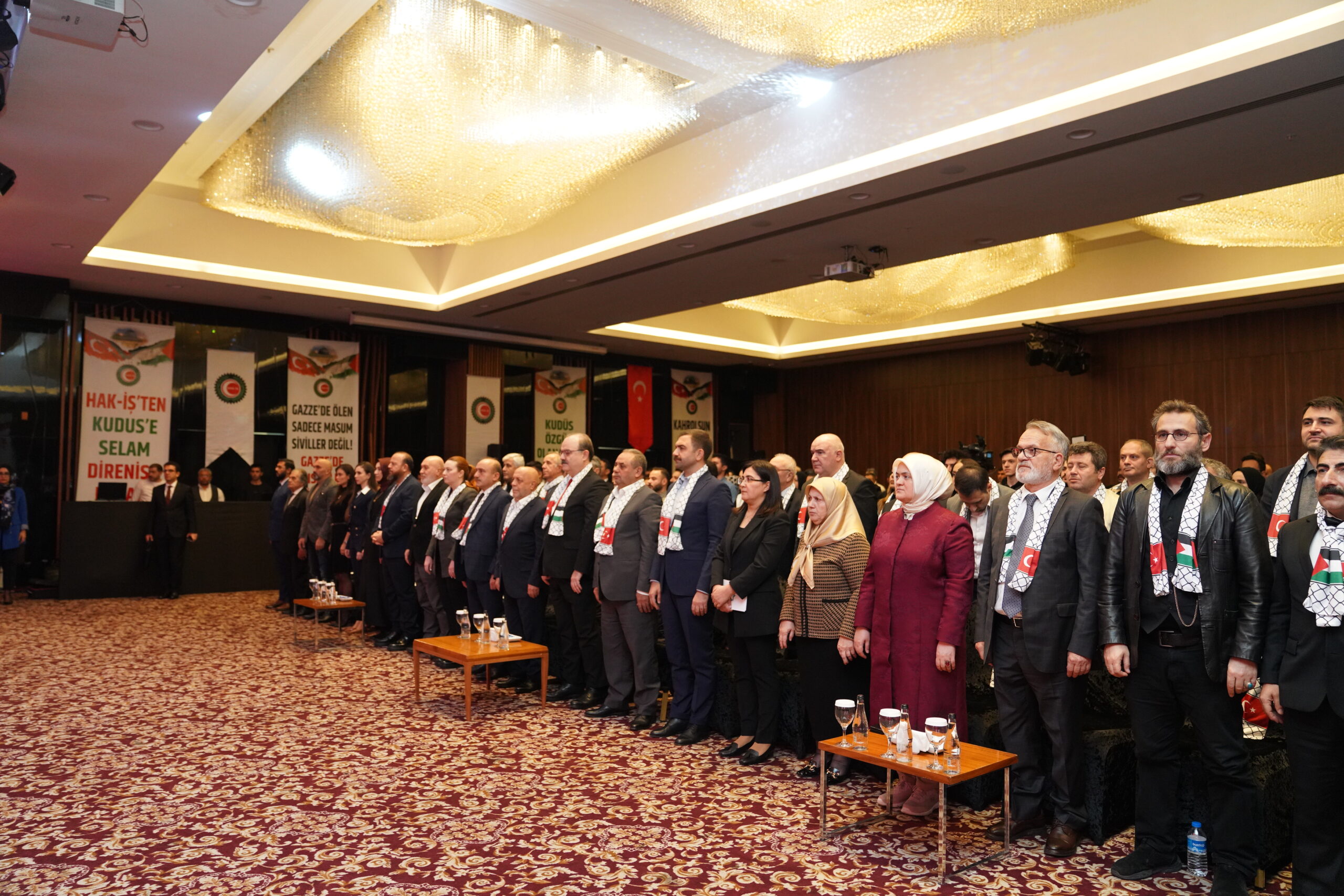 Arslan, “Bu yıl 12. sini gerçekleştirdiğimiz yarışmamızın ödül töreninde büyük bir mutluluk ve heyecan duymayı planlarken, Filistin’deki katliam ve soykırım bütün insanlığı olduğu gibi bizleri de derinden üzdü ve yaraladı. Filistin’de sadece Filistinliler değil, bütün insanlık ölüyor. Susarak, görmezden gelerek, olup bitenleri algı operasyonlarıyla yok saymaya kalkanları buradan bir kez daha lanetliyoruz. Susmayacağız, tarih susmayacak, hakikat susmayacak. Susmayanların duası ve mücadelesi inşallah galip gelecek. Buna yürekten inanıyoruz” diye konuştu. Dünyanın neresinde olursa olsun tüm mazlum ve mağdurlara HAK-İŞ’in borcu olduğunu ifade eden Arslan, “Filistin’de, Gazze’de, Kudüs’te yaşanan zulme karşı sessiz kalanlar, bunu destekleyenler ve zalimlerin yanında saf tutanlar, onlara kalemleriyle, silahlarıyla destek verenler, tarihte hainler olarak yer alacaktır. Dünyanın dört bir köşesinde yaşanan zulme karşı direnç gösterdik ve bugün de Filistinli kardeşlerimizle destek içerisindeyiz” şeklinde konuştu.
