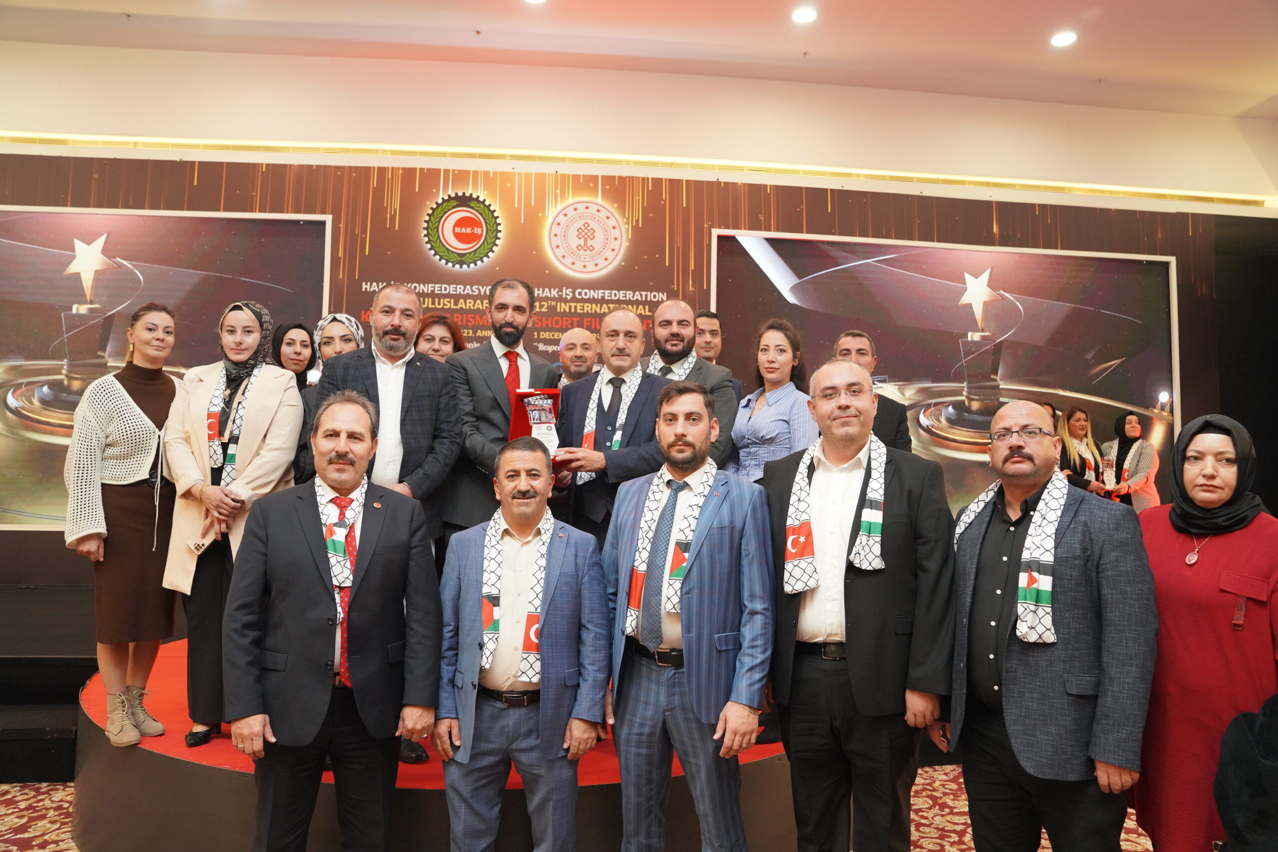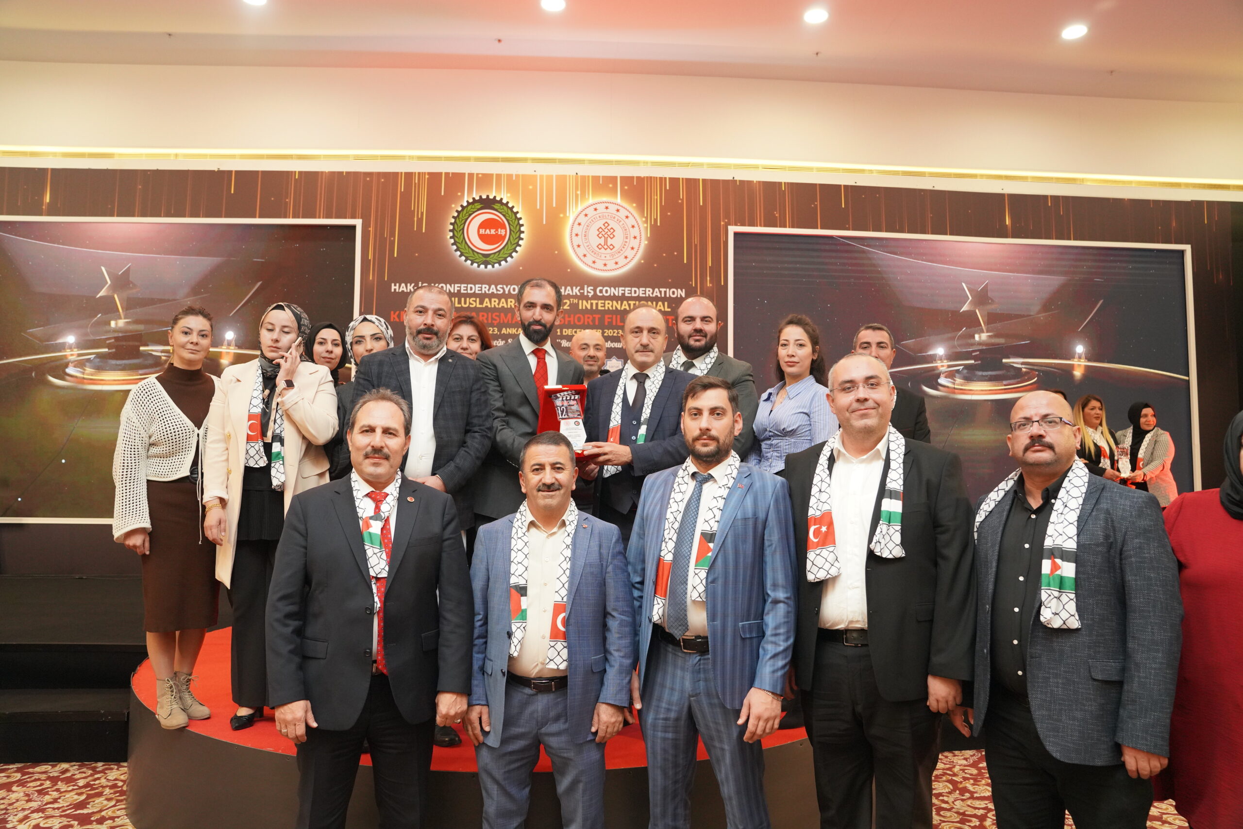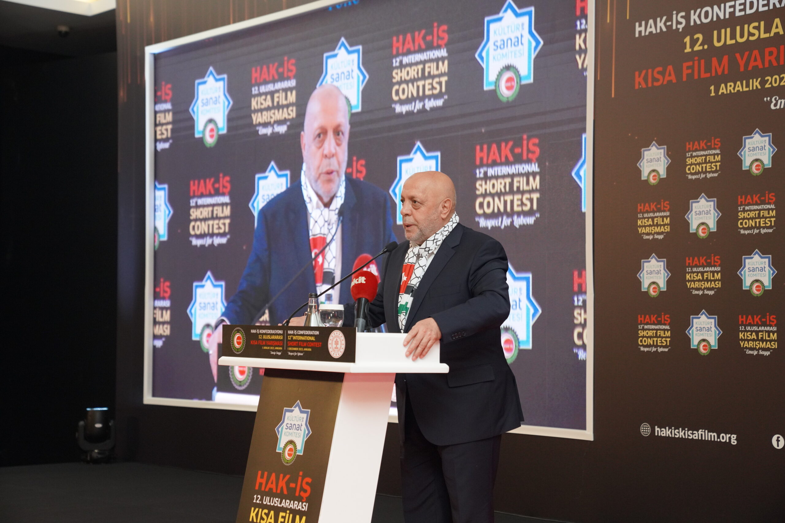 Konfederasyonumuz Genel Başkanı Mahmut Arslan, HAK-İŞ Kültür ve Sanat Komitesi’nin her yıl yeni başarılara imza atarak bu yıl 12. Gerçekleştirilen Kısa Film Yarışmasının Filistin’de yaşanan katliamların gölgesi altında buruk olarak kutlanıldığına dikkat çekti.