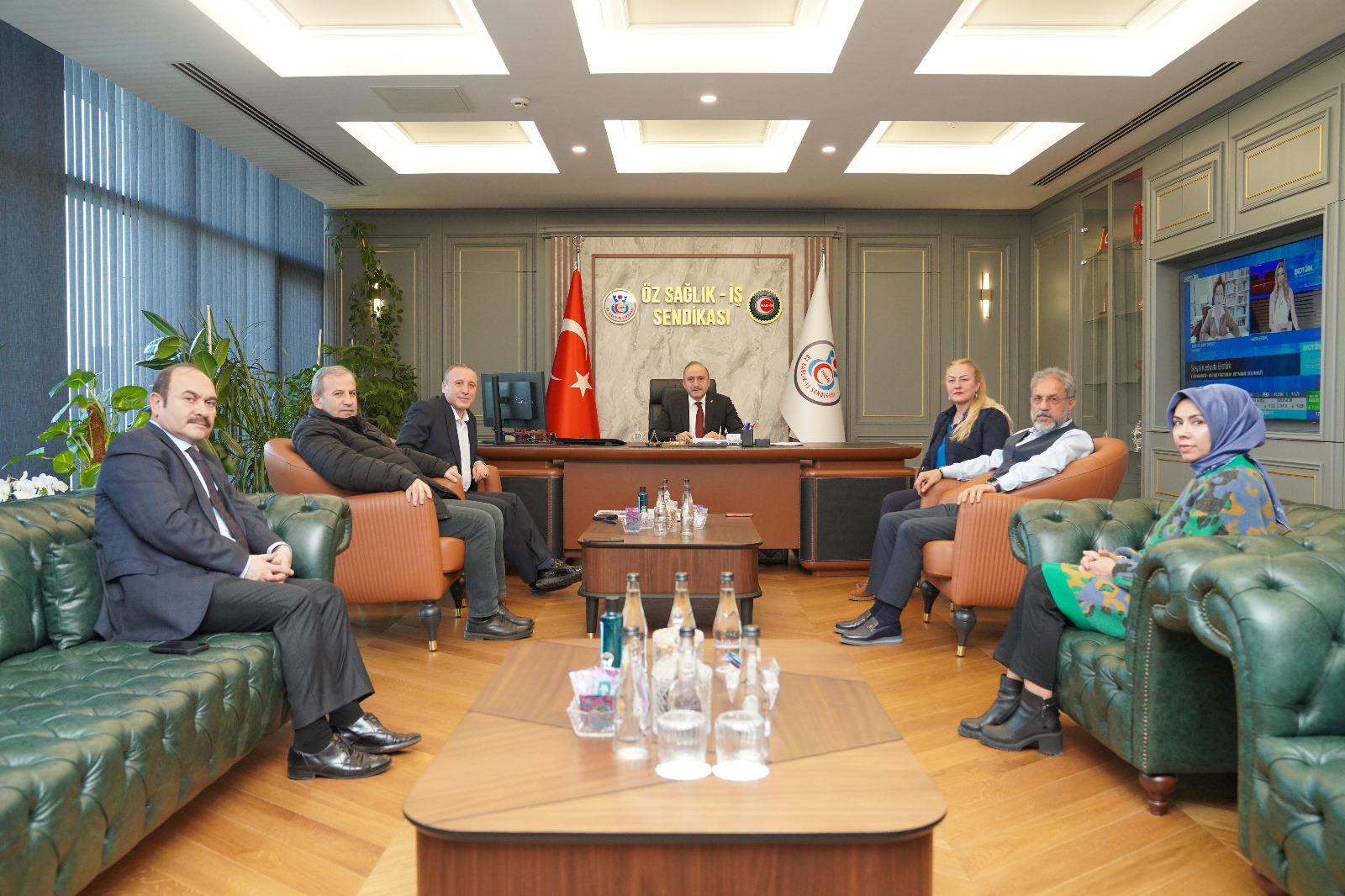 Sağlık Mensupları Dayanışma Toplum Sağlığı ve Çevreyi Koruma Derneği SAĞLIK-DER Genel Başkanı Kasım Sezen, Yönetim Kurulu Üyesi Azime Işık ve Teşkilat Başkanı Ahmet Tepe Sendikamıza gelerek Genel Başkanımız Devlet Sert’i ziyaret ettiler.