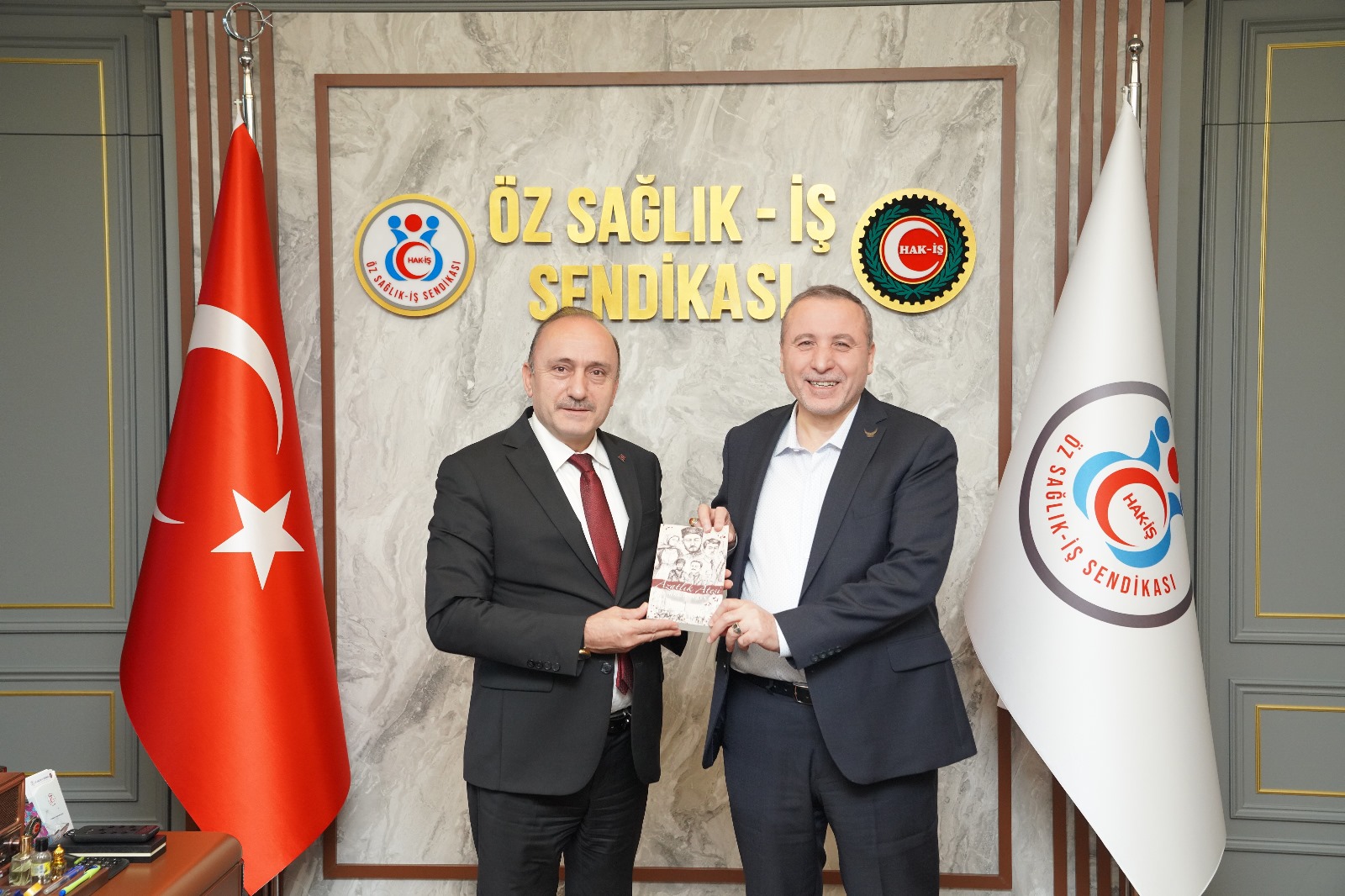 SAĞLIK-DER Genel Başkanı Sezen, Genel Başkanımız Sert’e yazarı olduğu kitabını hediye etti.