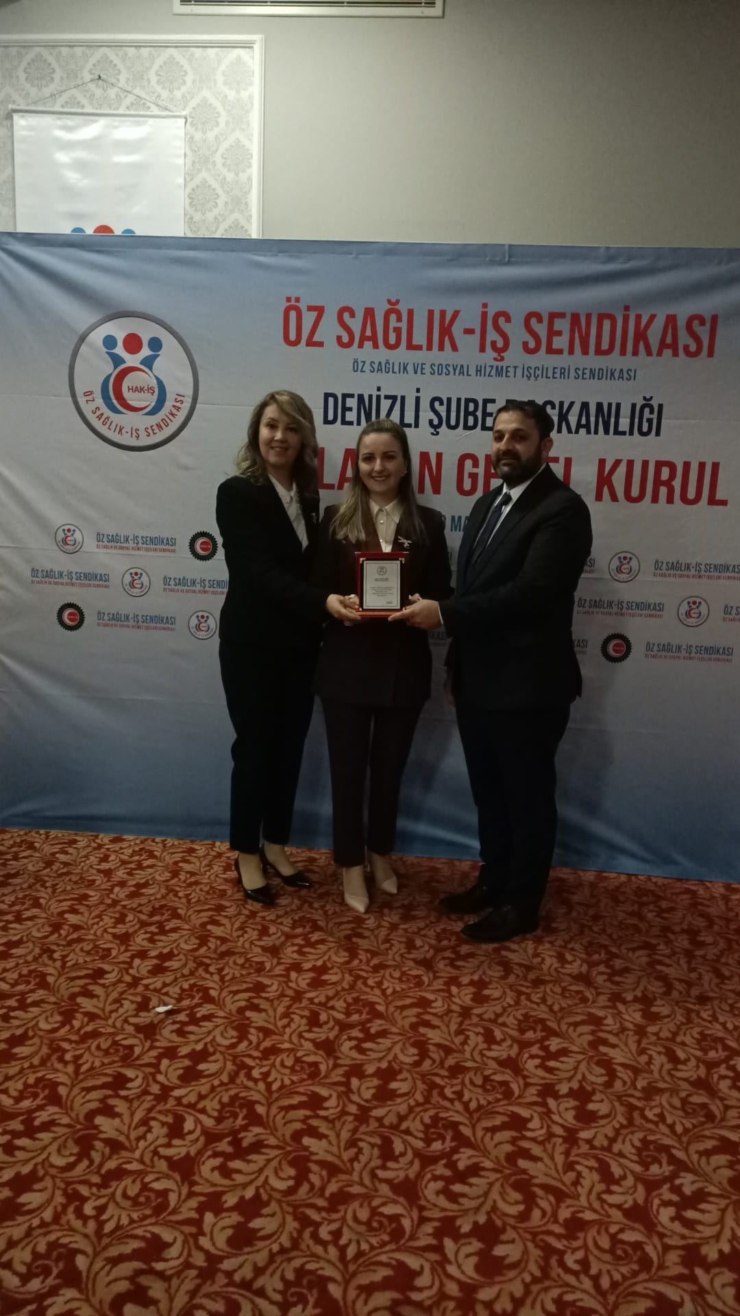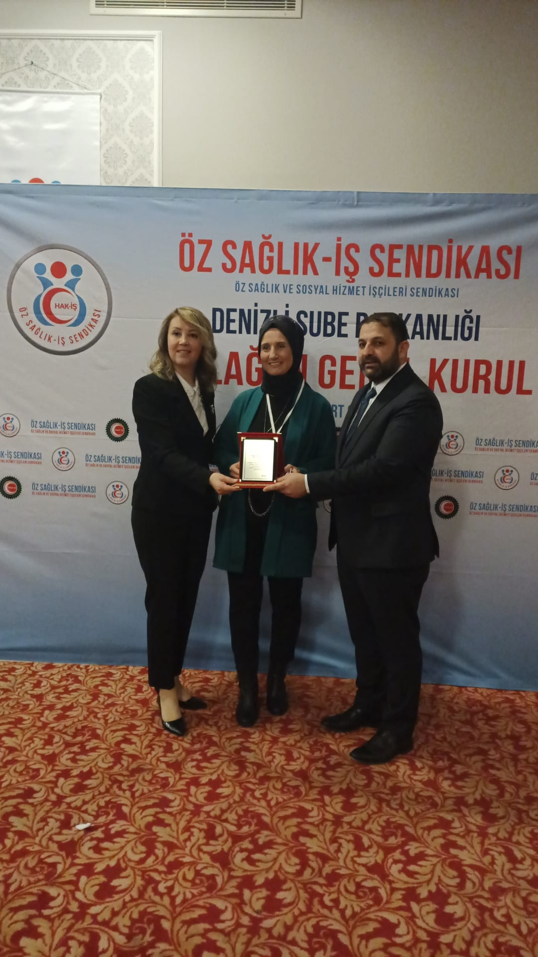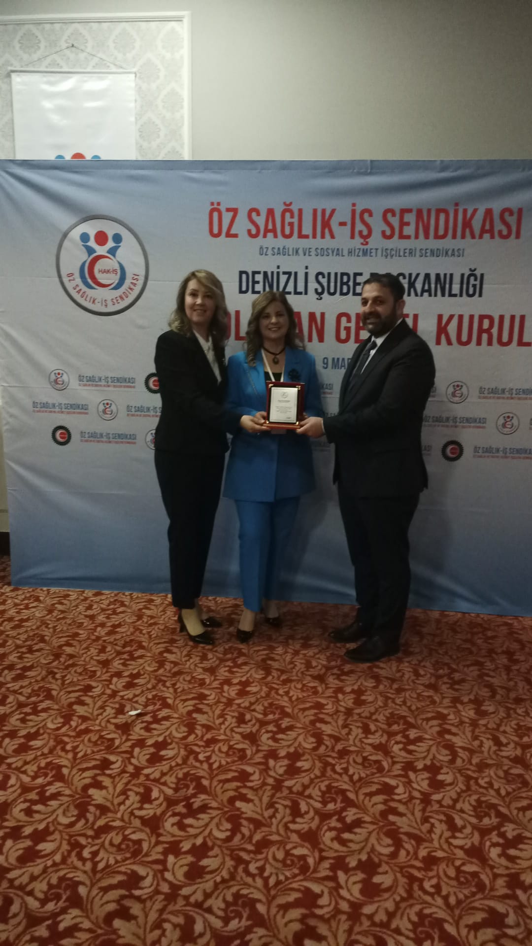 Bizlere bu onuru, bu gururu yaşatan başta Genel Başkanımız Devlet Sert ve Genel Merkez yönetimimiz olmak üzere, ülkenin bir başından diğerine uzanan büyük Öz Sağlık-İş teşkilatlarımıza, temsilcilerimize, en başta da üyelerimize Denizli Şube Başkanlığı olarak bir kez daha teşekkür etmek istiyorum.