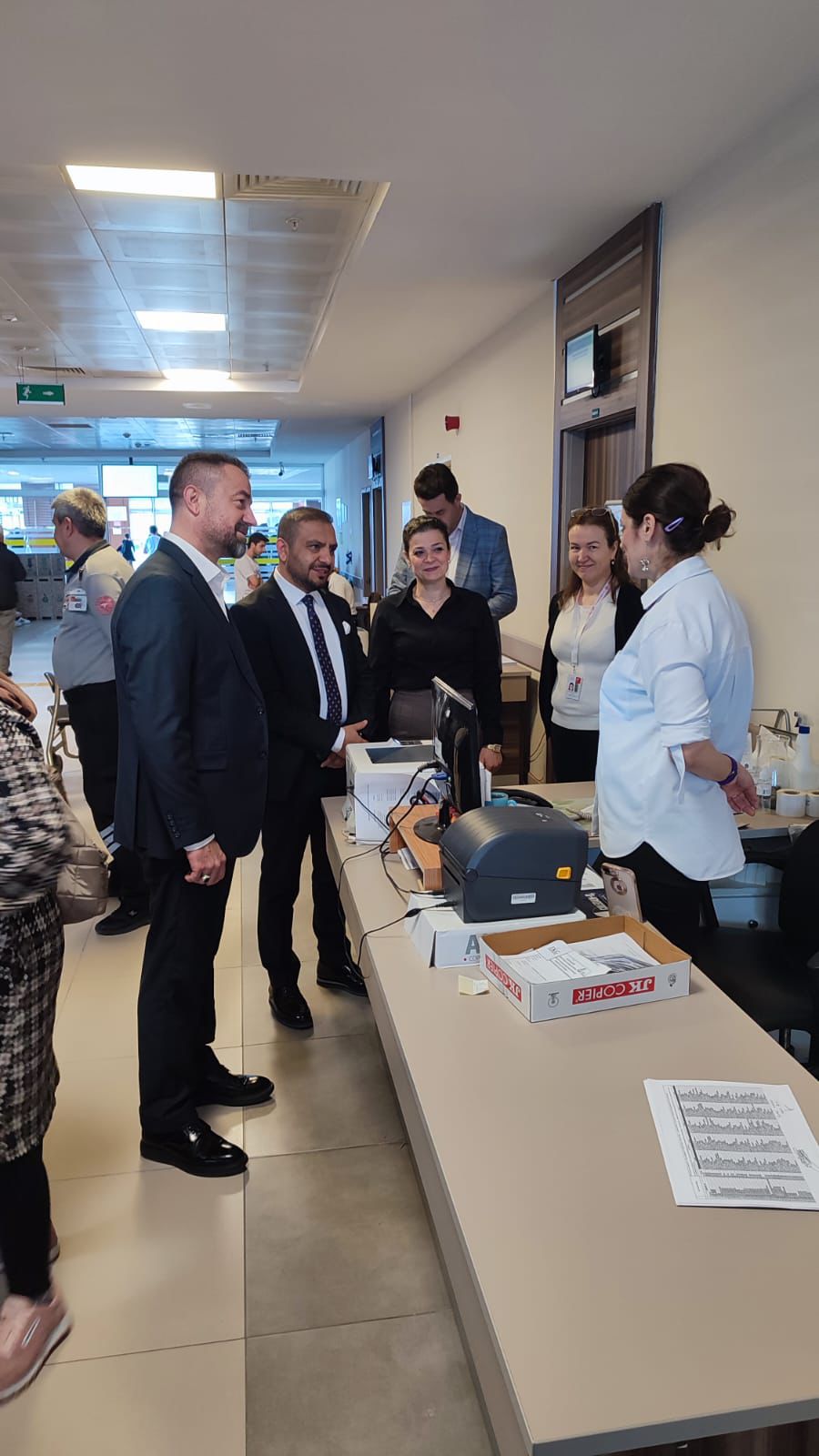 Edirne’de saha çalışmaları kapsamında Sultan 1. Murat Devlet Hastanesi’nde üyelerimizi çalıştıkları birimlerinde ziyaret eden Genel Başkan Yardımcımız Özüpek, Hastane Başhekimi Uzm.Dr. Gülsevin Şimşek ile İdari Mali Hizmetler Müdürü Yalçın Ay’ı da ziyaret etti.