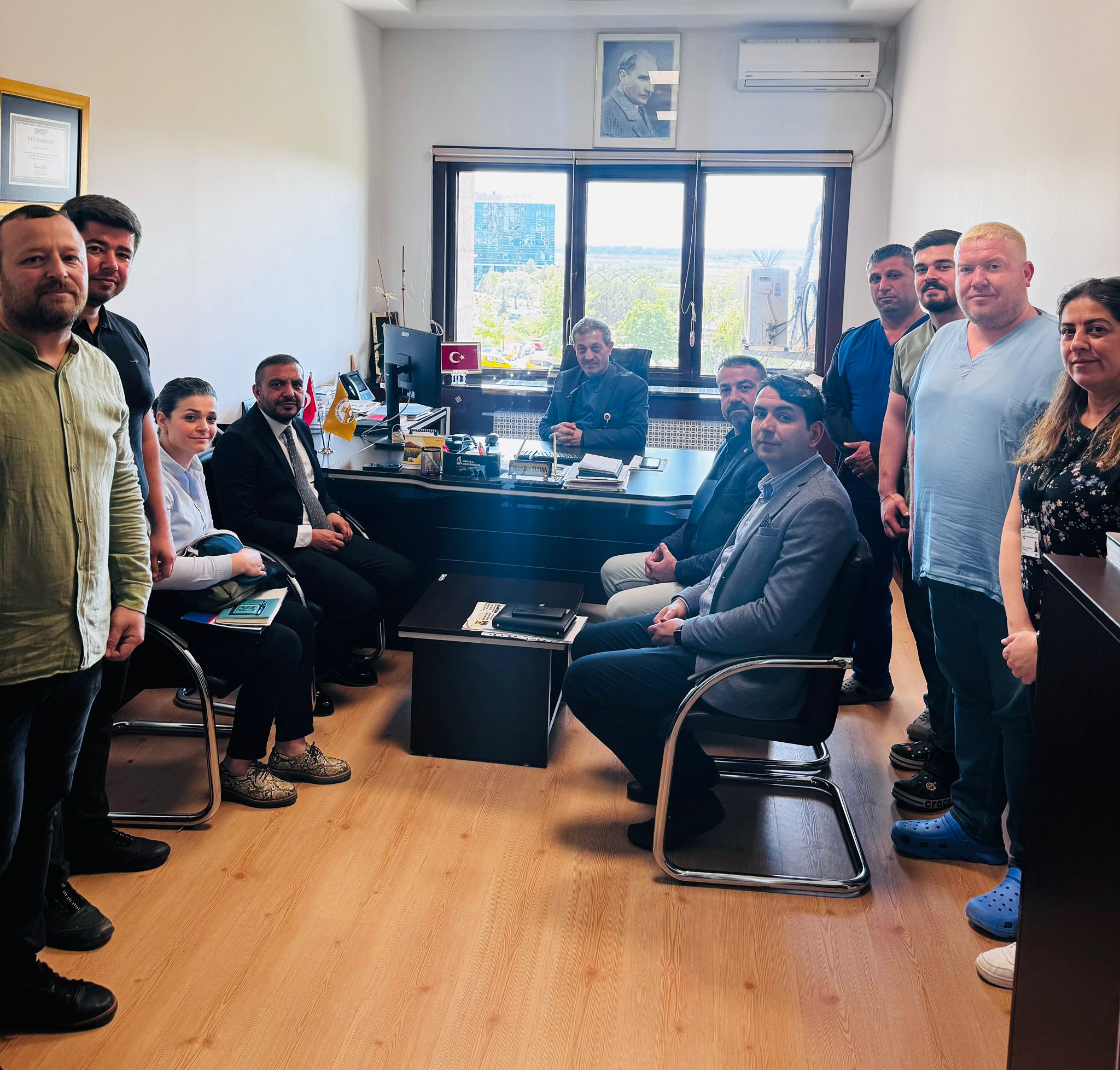 İl Sağlık Müdürü Uzm.Dr.Mustafa İsak Yıldırım ve Kalite ve Destek Hizmetler Başkan Yardımcısı Mustafa Kesler’i de ziyaret eden Genel Başkan Yardımcımız sağlık işçisi üyelerimizin çalışma koşullarına ilişkin bilgi alışverişinde bulundu.