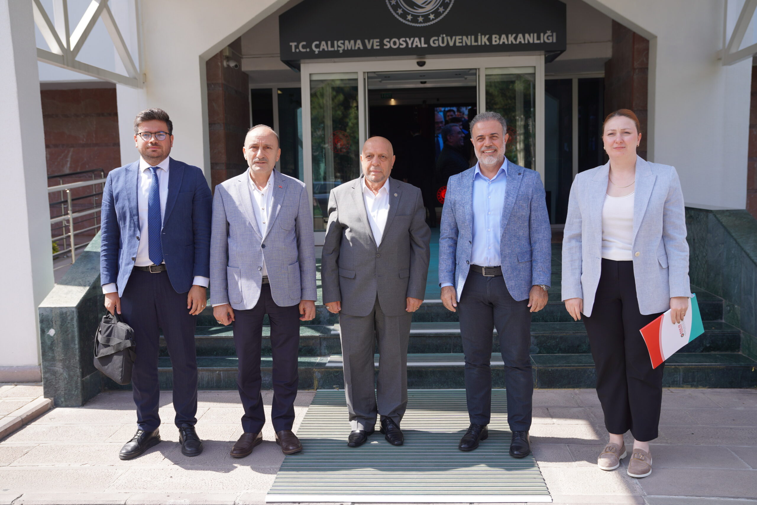 Çalışma ve Sosyal Güvenlik Bakanı Vedat Işıkhan ile yapılan görüşmede HAK-İŞ Genel Başkanı Mahmut Arslan, HAK-İŞ Genel Başkan Yardımcısı ve Sendikamız Genel Başkanı Devlet Sert, HAK-İŞ Genel Başkan Yardımcısı Halil Çukutli, HAK-İŞ Genel Sekreteri Eda Akbulut, HAK-İŞ Genel Sekreter Yardımcısı Hamdi Abdullah Koçoğlu bulundu.