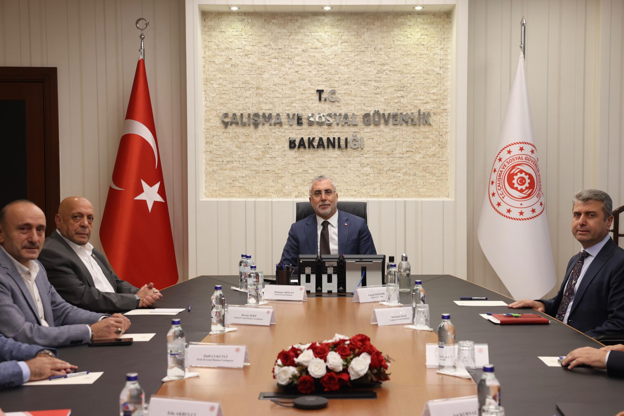 HAK-İŞ Genel Başkanı Mahmut Arslan, HAK-İŞ Genel Başkan Yardımcısı ve Sendikamız Genel Başkanı Devlet Sert, HAK-İŞ Genel Başkan Yardımcısı Halil Çukutli, Çalışma ve Sosyal Güvenlik Bakanı Vedat Işıkhan’ı ziyaret ederek, Kamu Çerçeve Protokolünde TÜHİS’in vermiş olduğu teklifin beklentilerimizin çok altında olduğunu ifade etti.