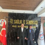 Muş Aile ve Sosyal Hizmetler İl Müdürü Ahmet Kırtay ile İl Sağlık Müdürü Dr. Erol Emre Ömür’ü ziyaret eden Genel Başkan Yardımcımız Doğan, yeni dönem toplu iş sözleşmelerimiz hakkında bilgi verdi. Doğan aynı zamanda üyelerimizin taleplerini ve sahada karşılaştıkları sorunları da aktardı.