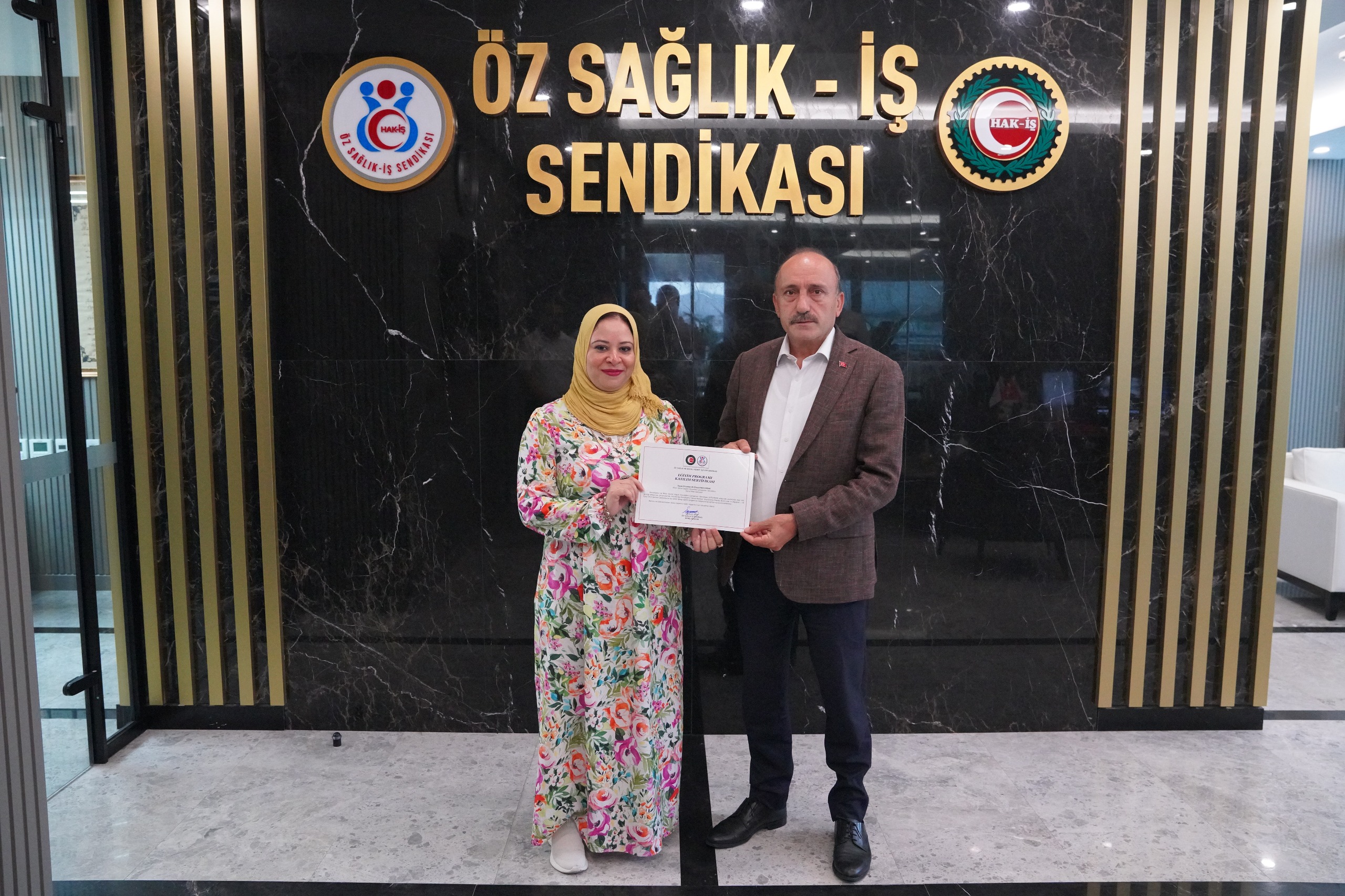 Bir ay süreli işbaşı eğitim programını başarıyla tamamlayan Mekhimar’a sertifikası, HAK-İŞ Genel Başkan Yardımcısı ve Sendikamız Genel Başkanı Sert tarafından takdim edildi.