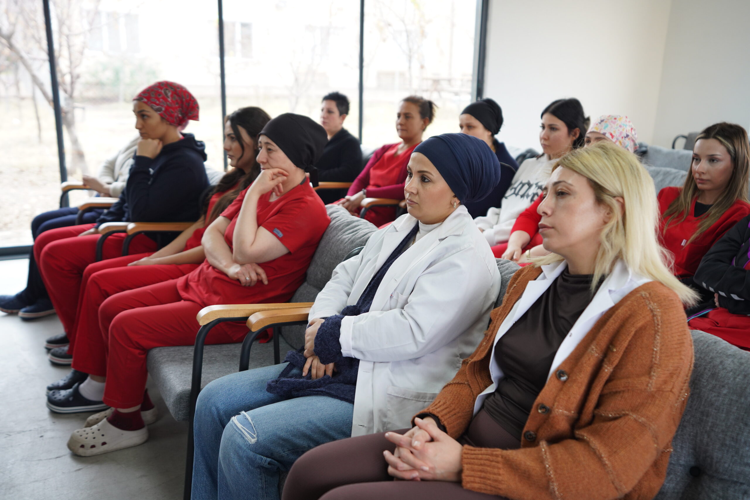 Ziyaret kapsamında Özel Bozdemir Bakım Merkezi’nde görev yapan üyelerimizle bir bilgilendirme toplantısı düzenleyen Başkan Sert, sendikamızın yürüttüğü çalışmalar hakkında değerlendirmelerde bulundu.