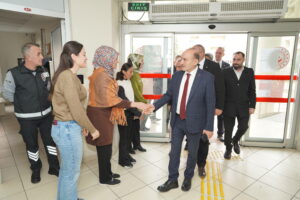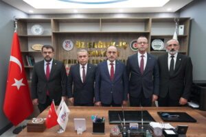 Üye ziyaretlerinin ardından Hastane Başhekimi Uzm. Dr. Hakan Varol ile Destek Hizmetleri ve Kalite Müdürü Ertan Toyran’ı da ziyaret eden Genel Başkanımız Sert, üyelerimizden iletilen sorun ve talepleri Başhekim Varol ile paylaşarak çözüm noktasında değerlendirmelerde bulundu.