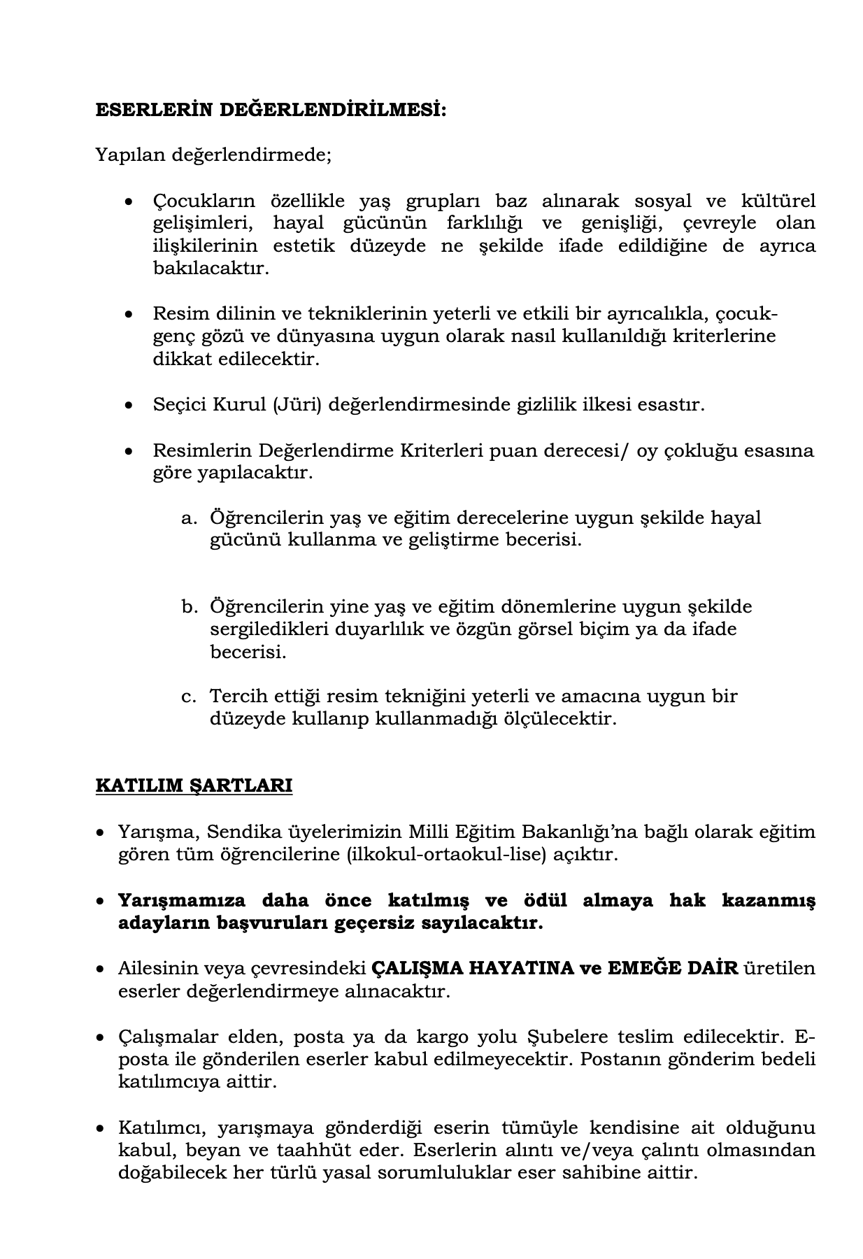 Şubeler tarafından teslim alınarak Genel Merkezimize gönderilecek eserler jüri değerlendirmesinin ardından dereceye girecek.