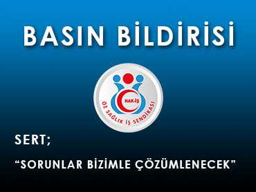 SERT; “SORUNLAR BİZİMLE ÇÖZÜMLENECEK” ÖZ SAĞLIK-İŞ Genel Başkanı Devlet SERT “Kadroya alınan Sağlık ve Sosyal hizmet İşçilerinin sorunları bizimle çözümlenecek” dedi. ÖZ SAĞLIK-İŞ Genel Başkanı, SERT, 696 Sayılı KHK düzenlemesi ile kadroya alınan Sağlık ve Sosyal Hizmet işçilerinin sorunları hakkında yaptığı yazılı açıklamada şu değerlendirmelerde bulundu: