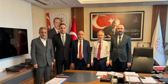 Genel Başkan Devlet Sert ile Genel Başkan Yardımcıları Adem Yavuz, Remzi Karataş ve Süleyman Doğan, Sağlık Bakanlığı Yönetim Hizmetleri Genel Müdürü olarak atanan Dr. Celal Şahin’e hayırlı olsun ziyaretinde bulundu. Ziyarette Genel Başkan Sert, sağlık işçilerinin taleplerini Yönetim Hizmetleri Müdürü Şahin ile paylaştı. Gündeme dair konuların da konuşulduğu ziyarette Genel …