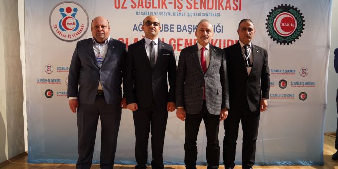 GENEL BAŞKAN DEVLET SERT: “ SAĞLIK BAKANLIĞI TİS MÜZAKERELERİMİZ BAŞLIYOR, İLK OTURUMU YARIN GERÇEKLEŞTİRECEĞİZ” Sendikamız Ağrı Şubesi’nin 1. Olağan Genel Kurulu yapıldı. Genel Kurulda Şube Başkanlığına Hakan Yıldırım seçildi. Şube yönetimi ise Sait Maral ve Ömer Ulusoy’dan oluştu. Ağrı Şubemizin 1. Olağan Genel Kurulu’nda konuşan Genel Başkan Devlet Sert Sağlık …