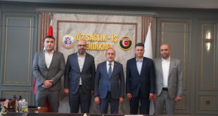 Sendikamız Öz Sağlık-İş’in Gazze’de yetim ve engelli çocuklar için yaptırdığı Umut Köprüsü Engelliler Okulu Müdürü Ebu Ali Mustafa, Deniz Feneri Derneği Yönetim Kurulu Üyesi Seyfi Özkan, Ankara Şubesi Yönetim Kurulu Üyesi Ahmet Karademir, Aksaray Üniversitesi Öğretim Üyesi Dr. Adil Aksoy ve Elbera Ebumuhammer Genel Başkanımız Devlet Sert’i ziyaret ettiler. Ziyarette …